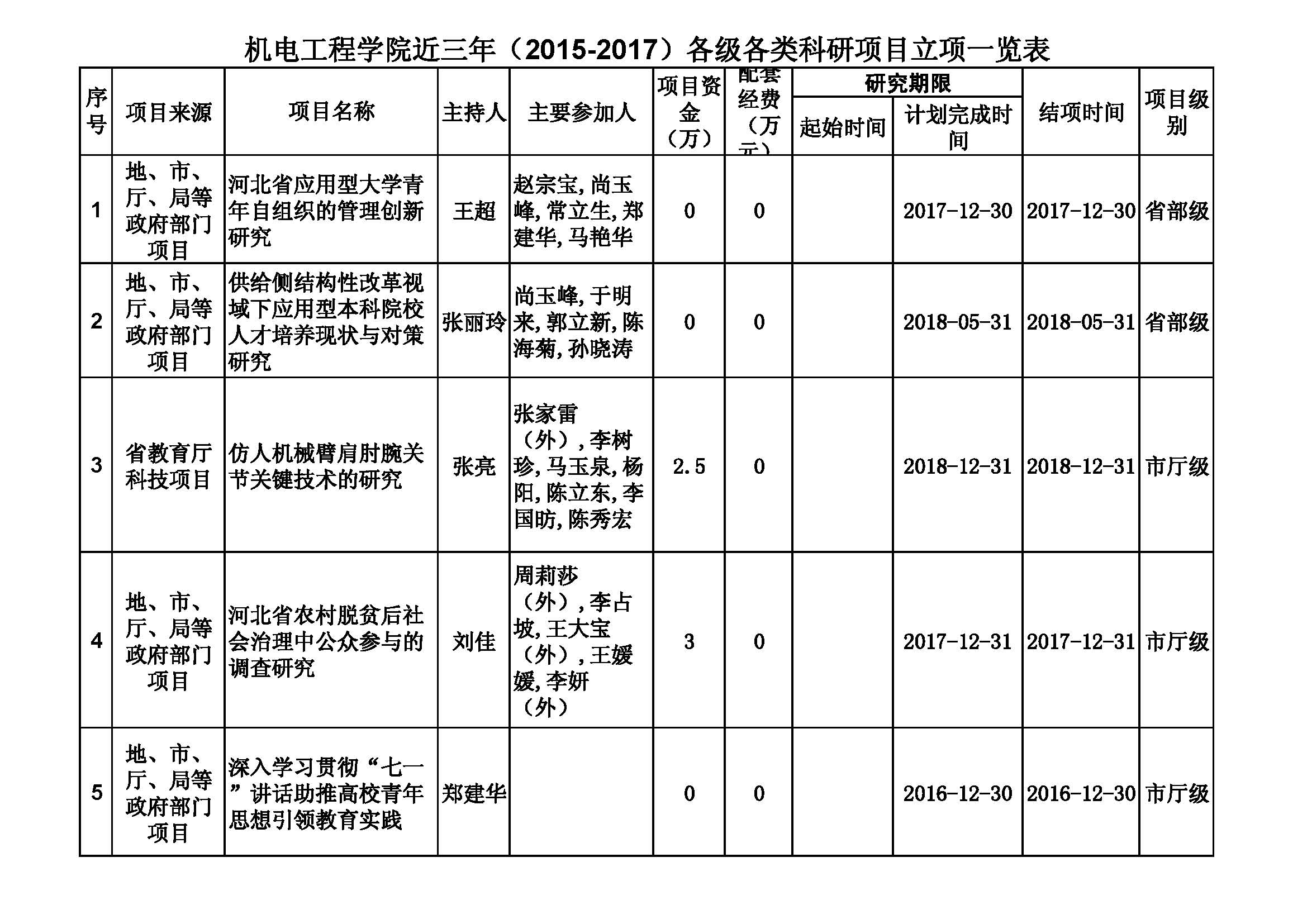 taptap点点体育近三年(2015-2017)各级各类科研项目立项情况