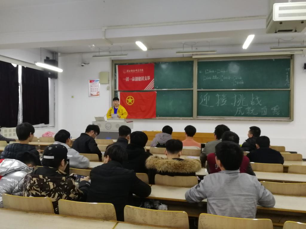 2018年11月29日,taptap点点体育机械设计制造及其自动化1603团支部在主楼C207举办了以“迎接挑战•成就自我”为主题的团日活动,团支部全体成员参加。