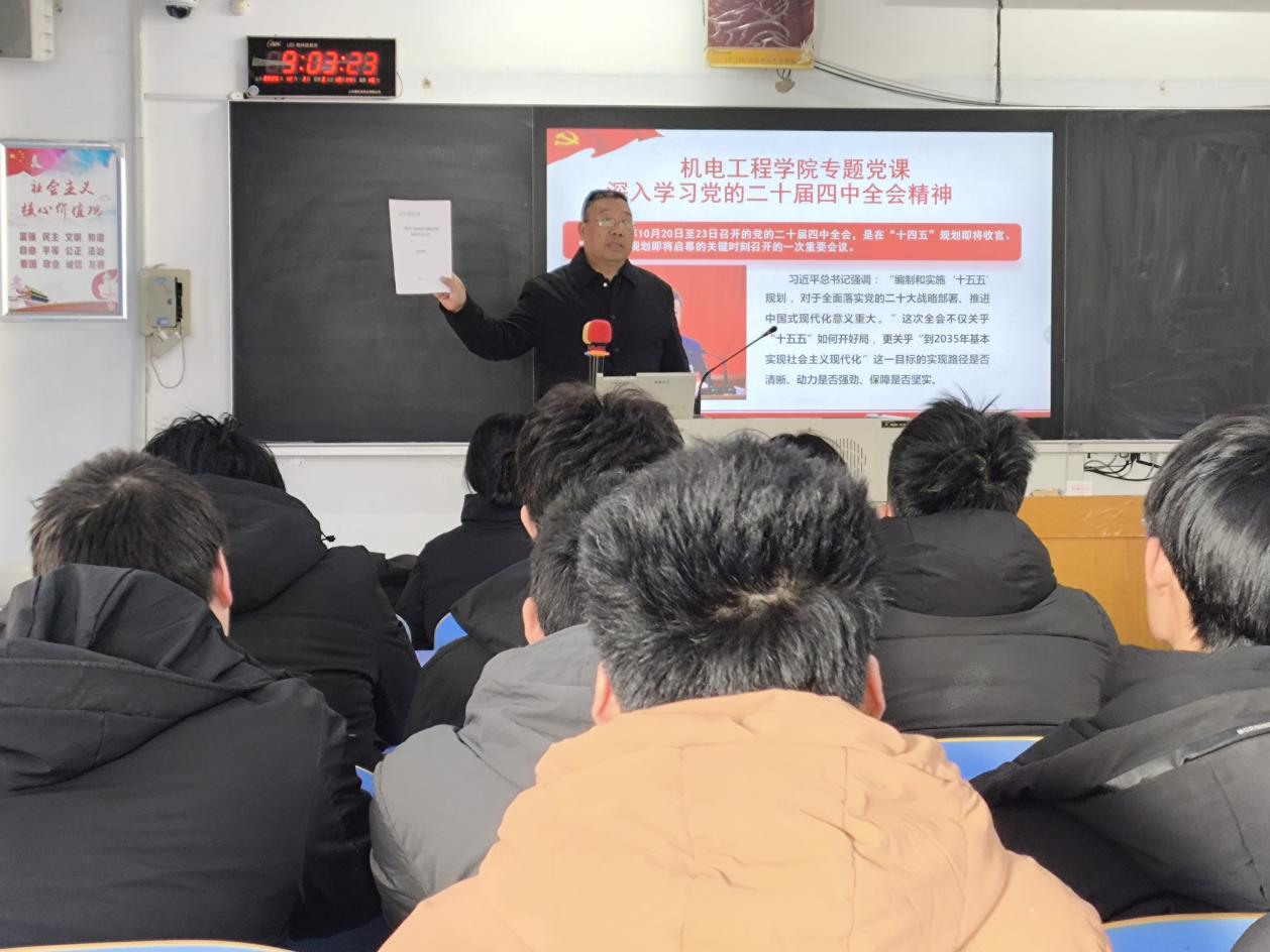 2025年12月3日,公司党委书记,在昌黎校区C202教室,为电气专业23级员工,举办了深入学习领会党的二十届四中全会精神专题党课,对全会精神进行了系统深入的解读,并就学习贯彻公司第四次党代会精神进行了阐述。