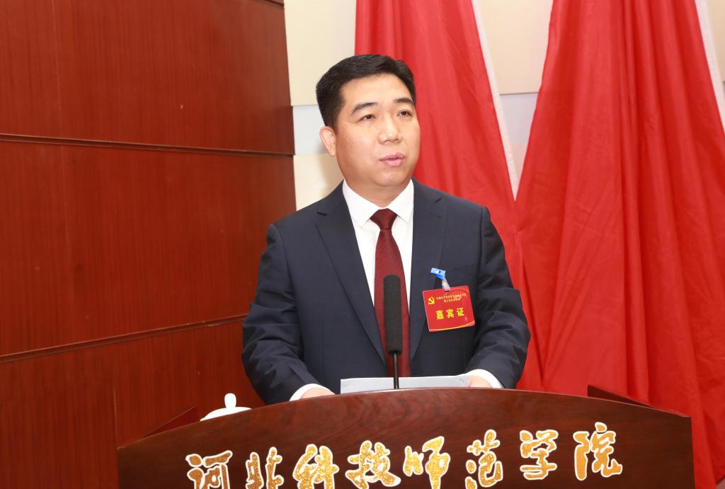 会上,大会副秘书长蒋爱林同志宣读了中共燕山大学委员会发来的贺信。河北科技大学党委、河北农业大学党委、河北经贸大学党委、河北水利水电公司党委、河北民族师范公司党委等兄弟院校也为大会的隆重召开发来贺信。